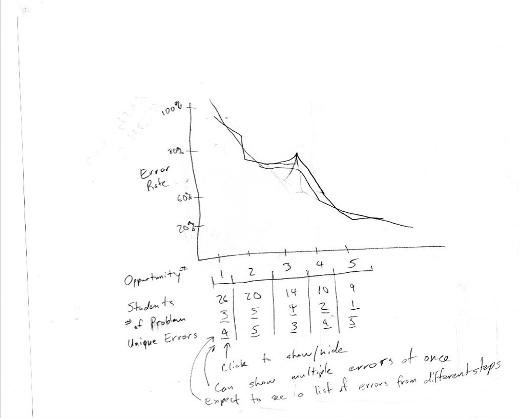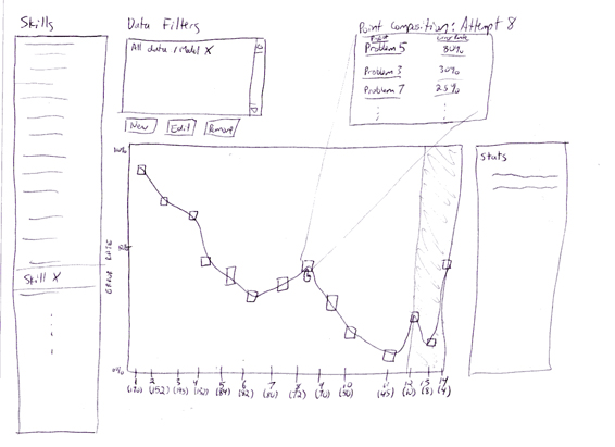 This early sketch for the learning curve display fell apart as soon as we tried to account for the users' need to compare two curves at once.